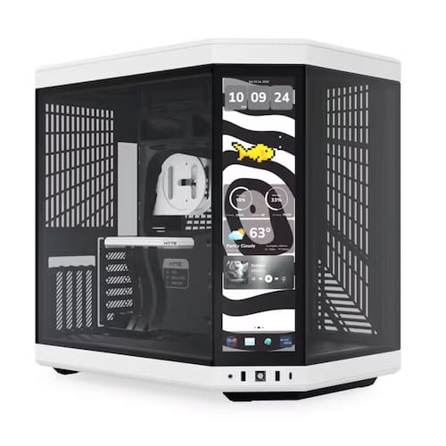 O HYTE Y70 Touch Infinite Panda é um gabinete mid tower de câmara dupla que redefine a experiência de montagem e desempenho. Projetado para acomodar placas de vídeo verticais de até 4 slots, ele maximiza o fluxo de ar e garante compatibilidade com GPUs de grande porte. Sua tela touchscreen IPS capacitiva de terceira geração tem 14,9", resolução de 2,5K, taxa de atualização de 60 Hz e tecnologia HYTE Nexus, proporcionando interatividade e personalização avançada. Com um brilho 43% maior, essa tela integrada ao chassi do gabinete deixa a experiência do usuário muito mais imersiva. Com suporte para até 10 fans e radiadores de até 360 mm, o Y70 Touch Infinite Black Cherry oferece resfriamento extremo, incluindo suporte para fans no piso frio para direcionamento de ar fresco à GPU. Possui cabo riser PCIE 4.0 x16 incluso facilitando a instalação da GPU, enquanto o layout de câmara dupla garante organização de cabos impecável. Além disso, seu design premium inclui vidro panorâmico de 3 peças e painéis sem ferramentas para fácil acesso e instalação.