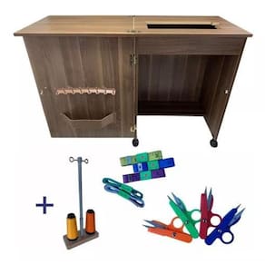 O kit inclui o gabinete completo desmontado , manual de montagem, kit de rodinhas com trava, porta cone de linha exclusivo, tesourinha de arremate plástica com dedal, fita métrica colorida e um mini catálogo com cupom de desconto.