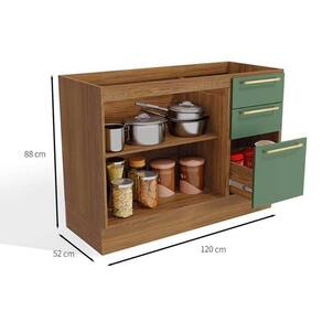 Balcão de Cozinha Botanic M624 c/ 2 Portas e 3 Gavetas s/Tampo 120cm Nogueira/Fendi - Kappesberg