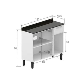 Balcão de Cozinha c/ Tampo Dona Maria 6173 c/ 3 Portas e 1 Gaveta 105cm Branco/Preto - Bertolini Marca: Bertolini