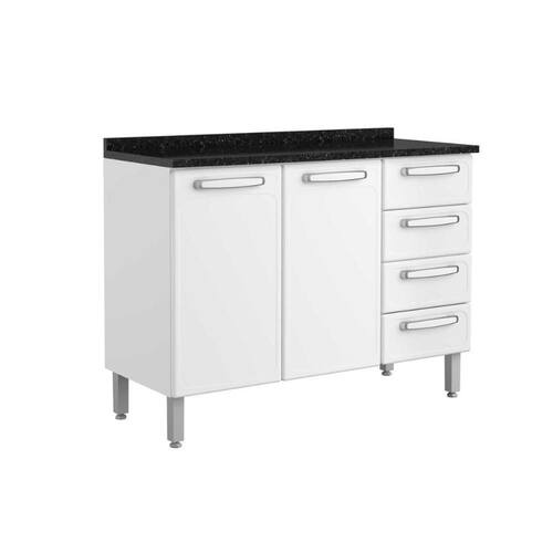 Gabinete p/ Pia Cozinha Balcão c/ Tampo Evidence 7126 c/ 2 Portas e 4 Gavetas 120cm Branco - Bertolini