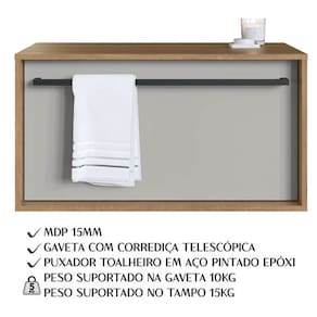 Renove seu espaço com elegância e praticidade utilizando este moderno gabinete para banheiro. Com design sofisticado e cores modernas, ele é perfeito para deixar seu banheiro mais charmoso e requintado. Puxador multifuncional que também serve como toalheiro, fabricado em aço com pintura epóxi, garantindo durabilidade e resistência. 01 gaveta espaçosa, ideal para organizar todos os seus itens pessoais. Instalação sem necessidade de furar paredes, permitindo que suas toalhas fiquem sempre acessíveis e bem acomodadas. Este gabinete versátil é a solução ideal para quem busca aliar praticidade com um toque de sofisticação no banheiro. Não acompanha cuba. Este móvel chegará em sua casa separado em 01 Volume.