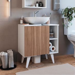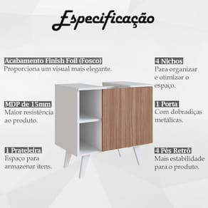 Produto: 01 Gabinete | Tonalidade: Multicolorido | Profundidade: 38 | Material: Madeira Cor: Branco Montana