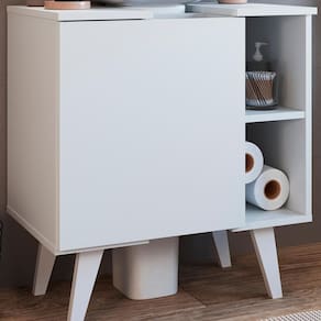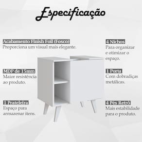 Produto: 01 Gabinete | Tonalidade: Multicolorido | Profundidade: 38 | Material: Madeira Cor: Branco