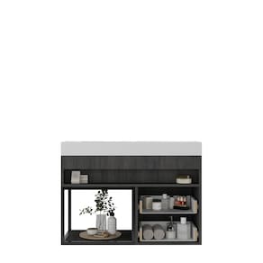 O gabinete new 80 é moderno, versátil e elegante. Gabinete suspenso, tendo 80cm de comprimento, 40m de profundidade e 56cm de altura, produzido com material de qualidade, tem um design único e características que garantem melhor e maior durabilidade ao produto, uma peça resistente a umidade e com perfeito acabamento. Possuí duas gavetas com trilho telescópico, tubo metálico que compõe e contribui para deixar o móvel ainda mais lindo. O nicho pode ser utilizado para guardar os itens que mais usa no dia-a-dia ou até mesmo uma bela decoração. Acabamento da Cuba: Polido Acabamento da Gaveta: PVC Acabamento da Prateleira: PVC Acompanha Cuba: Sim Acompanha Manual de Instalação: Sim Acompanha Parafusos Para Fixação Na Parede: Não Acompanha Válvula: Não Ambiente Principal: Banheiro codigo_ean: 7900288176172 Cor: Carbono Cor da Cuba: Branco Cor do Produto: Carbono Escala de Brilho: Fosco Escala de Brilho da Gaveta: Fosco Escala de Brilho da Prateleira: Fosco Furação para Cuba e Torneira: Sim Gaveta com Chave: Não Itens Inclusos: 1 Gabinete e 1 Cuba Linha ou Coleção: New 80 Manual de Montagem e Instalação: https://product-hub-prd.madeiramadeira.com.br/624783668/documents/edff4457-ea6b-427e-8675-8f1212398a272996529566517498455285071.pdf Marca: Belizze Material da Cuba: Mármore Sintético Material da Gaveta: MDF Material da Prateleira: MDF Material do Puxador da Gaveta: Poliestireno Material do Tampo: Mármore Sintético Material Principal: MDF Medida da Cuba (C x L x P): 80x40x7 Medida do Recorte Para Cuba: 40x80 Necessita Montagem: Não Origem do Produto: Nacional Peso: 20,3 kg Peso Máximo por Gaveta: 10 kg Possui Espelhos: Não Possui Nichos: 01 Possui Pés: Suspenso Possui Portas: Não Possui Prateleiras: Não Possui Recorte No Tampo Para Cuba: Sim Possui Recorte No Tampo Para Misturador: Não Possui Sifão: Não Possui Tampo: Sim Possui Tampo de Vidro: Não Produto Montado: Não Quantidade de Gavetas: 02 Recomendações de Uso, Manutenção e Limpeza: Retire o pó com uma flanela seca e depois utilize um pano macio umedecido com água. Não utilizar produtos químicos e abrasivos. Sapatas Niveladoras: Não Suporta Até (kg): 30 kg Tamanho do Gabinete: Médio: de 60cm a 80cm de largura Tipo de Corrediça da Gaveta: Metálica Telescópica Tipo de Cuba: Embutir Tipo de Gabinete: Gabinete Suspenso Tipo de Móvel para Banheiro: Gabinete Tipo de Móvel para o Banheiro: Gabinete de Banheiro Tipo de Puxador da Gaveta: Externo Válvula indicada: Sifão