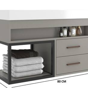 O gabinete new 80 é moderno, versátil e elegante. Gabinete suspenso, tendo 80cm de comprimento, 40m de profundidade e 56cm de altura, produzido com material de qualidade, tem um design único e características que garantem melhor e maior durabilidade ao produto, uma peça resistente a umidade e com perfeito acabamento. Possuí duas gavetas com trilho telescópico, tubo metálico que compõe e contribui para deixar o móvel ainda mais lindo. O nicho pode ser utilizado para guardar os itens que mais usa no dia-a-dia ou até mesmo uma bela decoração. Acabamento da Cuba: Polido Acabamento da Gaveta: PVC Acabamento da Prateleira: PVC Acompanha Cuba: Sim Acompanha Manual de Instalação: Sim Acompanha Parafusos Para Fixação Na Parede: Não Acompanha Válvula: Não Ambiente Principal: Banheiro codigo_ean: 7900288176158 Cor: Cimento Cor da Cuba: Branco Cor do Produto: Cimento Escala de Brilho: Fosco Escala de Brilho da Gaveta: Fosco Escala de Brilho da Prateleira: Fosco Furação para Cuba e Torneira: Sim Gaveta com Chave: Não Itens Inclusos: 1 Gabinete e 1 Cuba Linha ou Coleção: New 80 Manual de Montagem e Instalação: https://product-hub-prd.madeiramadeira.com.br/249673803/documents/a99eccd8-bec1-4b25-9958-a2dc37fa6b62299649856651749844856313.pdf Marca: Belizze Material da Cuba: Mármore Sintético Material da Gaveta: MDF Material da Prateleira: MDF Material do Puxador da Gaveta: Poliestireno Material do Tampo: Mármore Sintético Material Principal: MDF Medida da Cuba (C x L x P): 80x40x7 Medida do Recorte Para Cuba: 40x80 Necessita Montagem: Não Origem do Produto: Nacional Peso: 20,3 kg Peso Máximo por Gaveta: 10 kg Possui Espelhos: Não Possui Nichos: 01 Possui Pés: Suspenso Possui Portas: Não Possui Prateleiras: Não Possui Recorte No Tampo Para Cuba: Sim Possui Recorte No Tampo Para Misturador: Não Possui Sifão: Não Possui Tampo: Sim Possui Tampo de Vidro: Não Produto Montado: Não Quantidade de Gavetas: 02 Recomendações de Uso, Manutenção e Limpeza: Retire o pó com uma flanela seca e depois utilize um pano macio umedecido com água. Não utilizar produtos químicos e abrasivos. Sapatas Niveladoras: Não Suporta Até (kg): 30 kg Tamanho do Gabinete: Médio: de 60cm a 80cm de largura Tipo de Corrediça da Gaveta: Metálica Telescópica Tipo de Cuba: Embutir Tipo de Gabinete: Gabinete Suspenso Tipo de Móvel para Banheiro: Gabinete Tipo de Móvel para o Banheiro: Gabinete de Banheiro Tipo de Puxador da Gaveta: Externo Válvula indicada: Sifão