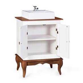 O Gabinete de Banheiro oferece espaço amplo, com duas portas, para armazenar seus itens essenciais, eliminando a desordem e garantindo que tudo esteja ao alcance das mãos. Com o tampo e pés em madeira maciça, você terá um móvel de alta qualidade e resistência. A Cuba em mármore sintético é o toque de luxo que seu banheiro merece. Além de conferir um visual sofisticado, a superfície de fácil limpeza otimiza suas tarefas do dia a dia.