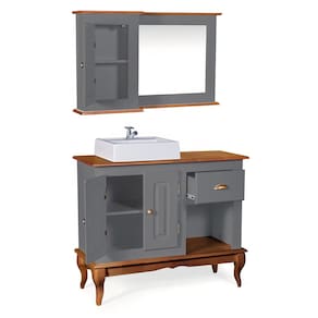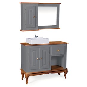 Gabinete para Banheiro 2 Portas com Cuba e Espelheira Dália 3058 - Cinza/Imbuia Glazer