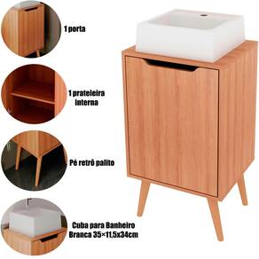 Características do Armário para Gabinete de Banheiro 45 cm com Cuba: