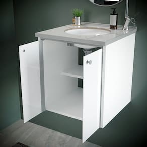 Com tampo em porcelanato polido, este gabinete é a combinação perfeita entre qualidade e design moderno.