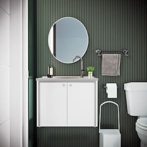 A cuba moldada em vidro e as portas de vidro lapidadas com películas protetoras completam o design com um toque de elegância, modernidade e segurança. Acabamento da Cuba: Alto Brilho Acabamento da Porta: Vidro Acabamento da Prateleira: BP Acompanha Cuba: Sim Acompanha Parafusos Para Fixação Na Parede: Sim Acompanha Válvula: Sim Ambiente Principal: Banheiro codigo_ean: 7900288299383 Complexidade da Montagem: Baixa: pode ser montado por uma pessoa sozinha Comprimento da Prateleira: 54 cm Cor: Branco Cor da Cuba: Branco Cor da Porta: Branco Cor do Produto: Branco Cor Interna: Branco Escala de Brilho: Brilhante Escala de Brilho da Porta: Brilhante Escala de Brilho da Prateleira: Fosco Espessura da Prateleira: 1,5 cm Formato da Cuba: Redondo Furação para Cuba e Torneira: Sim Itens Inclusos: 1 Gabinete, Kit Ferragens e Manual de Montagem Linha ou Coleção: Fenix Manual de Montagem e Instalação: https://product-hub-prd.madeiramadeira.com.br/734030553/documents/915b56c4-e40e-4c9d-8a1a-a5f63def5b143323363582917629457415269.pdf Marca: Cris Metal Material da Cuba: Vidro Material da Porta: Vidro Material da Prateleira: MDF Material do Puxador da Porta: Metal Material do Tampo: Cerâmica Material Principal: MDF Medida da Cuba (C x L x P): 35x35x9 Medida do Recorte Para Cuba: 27 Necessita Montagem: Sim Origem do Produto: Nacional Peso: 19,02 kg Peso Máximo por Prateleira: 10 kg Possui Espelhos: Não Possui Nichos: Não Possui Pés: Não Possui Portas: Sim Possui Prateleiras: Sim Possui Recorte No Tampo Para Cuba: Sim Possui Recorte No Tampo Para Misturador: Não Possui Sifão: Não Possui Tampo: Sim Produto Montado: Sim Recomendações de Uso, Manutenção e Limpeza: Pano umido Sistema de Montagem: bucha e parafusos Suporta Até (kg): 30 kg Tamanho do Gabinete: Médio: de 60cm a 80cm de largura Tipo de Cuba: Embutir Tipo de Dobradiça/Corrediça da Porta: Alumínio Tipo de Gabinete: Gabinete Suspenso Tipo de Móvel para Banheiro: Gabinete Tipo de Móvel para o Banheiro: Gabinete de Banheiro Tipo de Porta: Abrir Tipo de Puxador da Porta: Externo Válvula indicada: Exclusiva