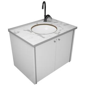 Gabinete com tampo em porcelanato polido, que reflete qualidade, sofisticação e inovação.