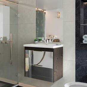 Gabinete de Banheiro 59 cm com 2 Gavetas Espelhadas e Pia California MGM Móveis Café