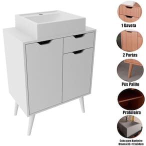 • Informações Adicionais: 1 gaveta com corrediças metálicas/Não acompanha torneira