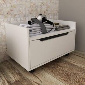 Possui 1 gavetas com frente usinada, tampo e rodízio que permite movimento. Estrutura em MDP e acabamento em pintura UV. Imagem meramente ilustrativa. A decoração do ambiente não acompanha o produto. Produto, acompanha nota. O produto será entregue desmontado. Acabamento da Gaveta: Pintura UV Acompanha Cuba: Não Acompanha Parafusos Para Fixação Na Parede: Sim Altura dos Pés: 5.5 Ambiente Principal: Banheiro Complexidade da Montagem: Média: pode ser montado por mais de uma pessoa e/ou necessite de maior conhecimento para montagem Cor: Branco Cor do Produto: Branco Cor Flex: Branco Cor Interna: Branco Escala de Brilho: Semi-Brilho Escala de Brilho da Gaveta: Semi-Brilho Gaveta com Chave: Não Informações Complementares: 15kg no tampo e 3kg gaveta. Itens Inclusos: 1 Gabinete, Manual de Montagem e Kit Ferragens Linha ou Coleção: BN Manual de Montagem e Instalação: https://product-hub-prd.madeiramadeira.com.br/862725/documents/c9a411d3-b302-4ed5-a819-2fca631c8a6c1443944bn3647.pdf Material da Gaveta: MDP Material do Tampo: MDP Material dos Pés: PVC Material Principal: MDP Necessita Montagem: Sim Origem do Produto: Nacional Peso: 10.6 Peso Máximo por Gaveta: 3 Possui Nichos: Não Possui Pés: 04 Possui Portas: Não Possui Prateleiras: Não Possui Recorte No Tampo Para Cuba: Não Possui Recorte No Tampo Para Misturador: Não Possui Rodízio: Sim Possui Sifão: Não Possui Tampo: Sim Recomendações de Uso, Manutenção e Limpeza: Para uma limpeza mais efetiva, utilizar apenas pano macio umedecido e sabão neutro. Não utilizar produtos abrasivos. Rodízio com Trava: Não Sapatas Niveladoras: Não Sistema de Montagem: Sim. Aconselhamos que a montagem seja feita por um profissional. Forre o chão com o próprio papelão de nossas embalagens para evitar danos e arranhões e monte o móvel deitado de costas para cima. Após montado não expor o móvel a fonte de calor ou umidade. Suporta Até (kg): 15 Suporte para Toalheiro: Não Tamanho Indicado Para Cuba: Não comporta cuba. Tipo de Corrediça da Gaveta: Metálica Simples Tipo de Gabinete: Gabinete com Rodízio Tipo de Móvel para o Banheiro: Gabinete de Banheiro Tipo de Puxador da Gaveta: Não Possui - Abertura por Fecho Toque Ean: 7909903379202