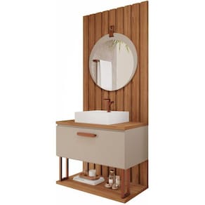 Conjunto para Banheiro com Gabinete, Painel Ripado e Espelheira Mari Espresso Móveis é formado por Gabinete para Banheiro 100% MDF, Cuba em Mármore Sintético, Painel Ripado em MDF e Espelheira em MDF. Com amplo espaço interno, seu design e características garantem melhor e maior durabilidade ao produto. Aproveite e adquira já o Conjunto Mari Espresso Móveis para deixar o seu ambiente ainda mais charmoso, sofisticado e elegante. Altura do Conjunto: 117 cm Ambiente: null Ambiente Principal: Banheiro Cor: Cappuccino Informação Complementar: 1x Espelheira Para Banheiro Alça em Couro Lua CappuccinoLargura: 60 cmAltura: 60 cmPeso: 4,1 kgProfundidade: 1,5 cmNecessita Montagem: Não1x Painel Ripado 60cm FreijóLargura: 61,1 cmAltura: 117 cmPeso: 12,6 kgProfundidade: 2,7 cmNecessita Montagem: Não1x Gabinete Para Banheiro 60cm Mari CappuccinoLargura: 61,3 cmAltura: 73 cmPeso: 25,1 kgProfundidade: 45,1 cmNecessita Montagem: Não Material Principal: MDF