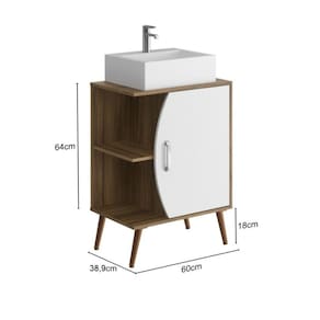 *objetos decorativos das imagens não acompanham produto. Acabamento da Porta: PET Acabamento da Prateleira: BP Acabamento dos Pés: BP Acompanha Cuba: Não Acompanha Parafusos Para Fixação Na Parede: Não Altura dos Pés: 18 cm Ambiente Principal: Banheiro Comprimento da Prateleira: 50 cm Cor: Branco/Nogal Cor do Produto: Branco/Nogal Cor Interna: Branco Escala de Brilho: Fosco Escala de Brilho da Porta: Fosco Escala de Brilho da Prateleira: Fosco Espessura da Prateleira: 27 cm Itens Inclusos: 1 Gabinete, Kit Ferragens e Manual de Instalação Linha ou Coleção: Ghana Manual de Montagem e Instalação: https://cdn2.madeiramadeira.com.br/atributo/moveis-bosi/1385777-duna-ghana-balcao-60.pdf Material da Porta: MDF Material da Prateleira: MDF Material do Puxador da Porta: ABS Material do Tampo: MDF Material dos Pés: Plástico Material Principal: MDF Necessita Montagem: Não Origem do Produto: Nacional Peso: 19,25 kg Peso Máximo por Prateleira: 15 kg Possui Nichos: Não Possui Pés: 04 Possui Portas: 01 Possui Prateleiras: 02 Possui Recorte No Tampo Para Cuba: Não Possui Recorte No Tampo Para Misturador: Não Possui Rodízio: Não Possui Sifão: Não Possui Tampo: Sim Recomendações de Uso, Manutenção e Limpeza: Limpar com flanela ou pano macio seco, não utilizar produtos abrasivos, desengordurantes, álcool ou solvente. Não expor o produto diretamente à luz solar e à umidade. Sapatas Niveladoras: Sim Suporta Até (kg): 15 kg Tamanho Indicado Para Cuba: 35 x 35 x 11,5 Tipo de Dobradiça/Corrediça da Porta: Aço Tipo de Gabinete: Gabinete de Chão Tipo de Móvel para o Banheiro: Gabinete de Banheiro Tipo de Porta: Bater Tipo de Puxador da Porta: Externo Ean: 7909903345009