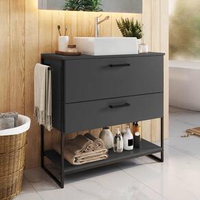 O gabinete para banheiro P1028 é produzido em metal 15mm com pintura epóxi e MDP 15mm, acabamento FF fosco. Possui 1 porta basculante com dobradiça metálica, articulador e puxador em plástico, 1 prateleira que suporta 5kgs e 1 gaveta com corrediça metálica, puxador em plástico e que suporta 3kgs. Produto acompanha cuba Ametista em marmorite. Peso suportado do produto é de até 20kgs. Possui 1 porta toalhas e 4 ponteiras plásticas que protegem o chão de arranhões e danos. Conteúdo da embalagem: móvel, ferragens e manual de montagem. A fixação das peças e/ou acessórios é feita por parafusos, cavilhas e minifix. Para a limpeza do móvel utilizar flanela seca. Garantia de 03 meses contra defeitos de fabricação. Medidas do produto (AxLxP): 90x80x37cm. Peso do produto: 26,1kgs.