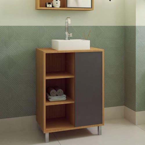 O gabinete para banheiro BL7250 da Faema possui pés, 1 porta de correr e 3 prateleiras que vão dispôr ao móvel um ótimo espaço interno e organização. Sua porta de correr facilita o acesso e visibilidade dos seus produtos guardados. Produto produzido em MDP 15mm. Acompanha cuba branca. Venha investir em um móvel móvel de ótima qualidade, funcional e moderno! Acabamento da Cuba: Liso Acabamento da Porta: Finish Foil Acabamento da Prateleira: Finish Foil Acabamento dos Pés: Liso Acompanha Cuba: Sim Acompanha Manual de Instalação: Sim Acompanha Parafusos Para Fixação Na Parede: Não Altura dos Pés: 13 Ambiente Principal: Banheiro Complexidade da Montagem: Média: pode ser montado por mais de uma pessoa e/ou necessite de maior conhecimento para montagem Comprimento da Prateleira: 30 Cor: Mel/Grafite Cor da Cuba: Branca Cor do Produto: Mel/Grafite Cor Flex: Não Cor Interna: Mel Escala de Brilho: Fosco Escala de Brilho da Porta: Fosco Escala de Brilho da Prateleira: Fosco Espessura da Prateleira: 1.5 Furação para Cuba e Torneira: Não Itens Inclusos: 1 Gabinete de Banheiro e 1 com Cuba Manual de Montagem Linha ou Coleção: Banheiro Manual de Montagem e Instalação: https://product-hub-prd.madeiramadeira.com.br/875400/documents/83230de9-274a-436e-a7b7-b83af23893ff7449507805manualbl72500908.pdf Material da Cuba: Mármore Sintético Material da Porta: MDP Material da Prateleira: MDP Material do Tampo: MDP Material dos Pés: ABS Material Principal: MDP Medida da Cuba (C x L x P): 9x32x30 Montagem Flex: Não Necessita Montagem: Sim Origem do Produto: Nacional Pés Reguláveis: Sim Peso: 18.924 Peso Máximo por Prateleira: 10 Possui Nichos: Não Possui Pés: 04 Possui Portas: 01 Possui Prateleiras: 03 Possui Recorte No Tampo Para Cuba: Não Possui Recorte No Tampo Para Misturador: Não Possui Rodízio: Não Possui Sifão: Não Possui Tampo: Sim Produto Montado: Não Recomendações de Uso, Manutenção e Limpeza: Para a limpeza do móvel utilizar pano levemente umedecido com água Resistente à Chuva: Não Sapatas Niveladoras: Não Sistema de Montagem: Parafusos e cavilhas Suporta Até (kg): 45 Suporte para Toalheiro: Não Tipo de Dobradiça/Corrediça da Porta: Metálica Tipo de Gabinete: Gabinete de Chão Tipo de Móvel para o Banheiro: Gabinete de Banheiro Tipo de Porta: Correr Tipo de Puxador da Porta: Embutido Válvula indicada: Tradicional Ean: 7909903462706