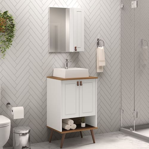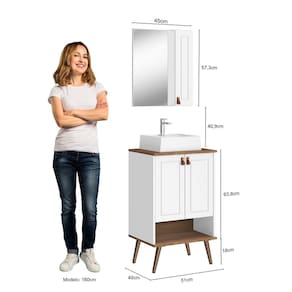 Conjunto de Banheiro Denver Yescasa: compacto e funcional, com 50cm de largura, é ideal para banheiros pequenos. Possui balcão com nicho para organização e espelheira com porta e prateleira, garantindo praticidade no dia a dia com um design clássico. As portas são revestidas em PET, material sustentável feito a partir de plástico reciclado que garante maior resistência à umidade. Acabamento da Cuba: Gel Acabamento da Porta: PET Acabamento da Prateleira: BP Melamínico Acabamento dos Pés: ABS Acompanha Cuba: Sim Acompanha Gaveteiro: Não Acompanha Manual de Instalação: Sim Acompanha Parafusos Para Fixação Na Parede: Sim Acompanha Tampo: Sim Acompanha Válvula: Não Altura do Espelho: 56,6 cm Altura dos Pés: 18 cm Altura Máxima dos Pés: 18.0000 Ambiente Principal: Banheiro codigo_ean: 7900288276513 Complexidade da Montagem: Baixa: pode ser montado por uma pessoa sozinha Comprimento da Prateleira: 13 cm Cor: Branco/Carvalho Cor da Cuba: Branco Cor da Porta: Branco Cor do Produto: Branco/Carvalho Cor Interna: Branco Escala de Brilho: Fosco Escala de Brilho da Porta: Fosco Escala de Brilho da Prateleira: Fosco Espessura do Espelho: 3 mm Formato da Cuba: Quadrado Formato do Espelho: Retangular Formato Espelheira: Retangular Furação para Cuba e Torneira: Sim Itens Inclusos: 1 Espelheira, 1 Cuba, 1 Balcão, Kit Ferragens e Manual de Montagem Largura do Espelho: 28,6 cm Linha ou Coleção: Denver Manual de Montagem e Instalação: https://product-hub-prd.madeiramadeira.com.br/628944647/documents/f9e005c6-c359-48ca-bef1-03f157e4464e3294988322817616488339098.pdf Marca: Yescasa Material da Cuba: Mármore Sintético Material da Porta: MDF Material da Prateleira: MDP Material do Puxador da Porta: Couro Material do Tampo: MDP Material dos Pés: ABS Material Principal: MDP Medida da Cuba (C x L x P): 33 x 34 x 9,9 Medida da Espelheira (A x L x P): 57,3 x 45 x 13 Medida do Gabinete (A x L x P): 63,8 x 51 x 40 Necessita Montagem: Sim Origem do Produto: Nacional Pés Reguláveis: Sim Peso: 29,9 kg Peso Máximo por Prateleira: 5 kg Possui Espelheira: Sim Possui Gabinete: Sim Possui Gavetas: Não Possui iluminação: Não Possui Nichos: Sim Possui Pés: 04 Possui Porta de Vidro: Não Possui Recorte No Tampo Para Cuba: Não Possui Recorte No Tampo Para Misturador: Não Possui Rodízio: Não Possui Sifão: Não Possui Tampo: Sim Possui Tampo de Vidro: Não Produto Montado: Sim Quantidade de Espelhos: 01 Recomendações de Uso, Manutenção e Limpeza: Limpar com flanela ou pano macio seco, não utilizar produtos abrasivos, desengordurantes, álcool ou solventes. Não expor o produto diretamente à luz solar. Sapatas Niveladoras: Sim Sistema de Montagem: Parafusos, cavilhas e minifix Suporta Até (kg): 15 kg Suporte para Toalheiro: Não Tamanho do Espelho (A x L): 56,6 x 28,6 Tamanho do Gabinete: Pequeno: Abaixo de 60cm de largura Tamanho do Produto: 180 x 51 x 40 Tipo de Cuba: Sobrepor Tipo de Dobradiça/Corrediça da Porta: Metálica Tipo de Fixação do Espelho: Parafusos Tipo de Gabinete: Gabinete de Chão Tipo de Porta: Abrir Tipo de Puxador da Porta: Externo Válvula indicada: 35mm