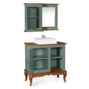 Gabinete para Banheiro com Cuba e Armário Espelheira Dália 3051 - Verde Musgo/Imbuia Glazer