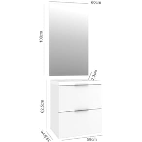 Seu banheiro merece o que melhor se adapta a suas necessidades e o torna linda ao mesmo tempo, não é mesmo? Com o Conjunto Pietra vai ser simples conquista-lo. Composto por 1 gabinete, 1 lavatório e 1 espelho, contém as peças ideais para manter produtos de higiene sempre à mão e também para auxiliar na hora de se arrumar todas as manhãs. Este produto já é enviado totalmente montado, basta apenas fazer as instalações hidráulicas e pronto, é possível utilizá-lo em pouco tempo. Acessórios como válvula, cifão, torneira e outros não acompanham produto. Acabamento da Cuba: Alto Brilho Acabamento da Gaveta: BP Acompanha Cuba: Sim Acompanha Tampo: Não Ambiente Principal: Banheiro codigo_ean: 7898515779077 Cor: Branco/Branco Brilho Cor da Cuba: Branco Cor do Produto: Branco/Branco Brilho Escala de Brilho: Fosco Escala de Brilho da Gaveta: Fosco Espessura do Espelho: 230 mm Formato do Espelho: Retangular Furação para Cuba e Torneira: Sim Gaveta com Chave: Não Itens Inclusos: 1 Espelho, 1 Lavatório, 1 Balcão, kit de instalação e Manual. Linha ou Coleção: Pietra Manual de Montagem e Instalação: https://product-hub-prd.madeiramadeira.com.br/579845/documents/c5eb709f-e10d-41cb-9287-94d0996ce0b69a4f0ac24ce525897585210166.pdf Material da Cuba: Mármore Sintético Material da Gaveta: MDF Material do Puxador da Gaveta: Alumínio Material Principal: MDF Medida da Cuba (C x L x P): 60cmx40cmx12cm Medida da Espelheira (A x L x P): 100cmx60cmx2,3cm Medida do Gabinete (A x L x P): 62,5cmx58cmx39,5cm Necessita Montagem: Não Origem do Produto: Nacional Peso: 41,59 kg Peso Máximo por Gaveta: 10 kg Possui Espelheira: Sim Possui Gabinete: Sim Possui Gavetas: Sim Possui iluminação: Não Possui Pés: Suspenso Possui Portas: Não Possui Rodízio: Não Produto Montado: Não Recomendações de Uso, Manutenção e Limpeza: Limpar com flanela ou pano macio seco, não utilizar produtos abrasivos, desengordurantes, álcool ou solvente. Não expor o produto diretamente à luz solar e à umidade. Tamanho do Espelho (A x L): 90x58 Tipo de Corrediça da Gaveta: Metálica Telescópica Tipo de Puxador da Gaveta: Externo