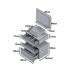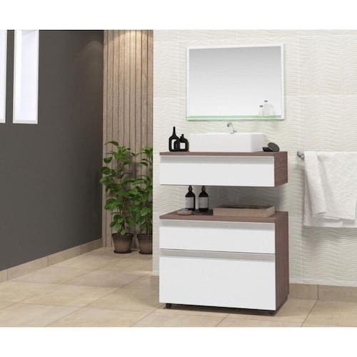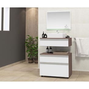 *PRODUTO TOTALMENTE RESISTENTE A ÚMIDADE E RESPINGOS DE ÁGUA! Acabamento da Cuba: Pintura UV Acabamento da Gaveta: Pintura UV Acabamento da Prateleira: Vidro Acompanha Cuba: Sim Acompanha Tampo: Sim Ambiente Principal: Banheiro codigo_ean: 7909903227411 Cor: Branco Cor da Cuba: Branco Cor do Produto: Branco Cor Interna: Rústico Escala de Brilho: Fosco Escala de Brilho da Gaveta: Brilhante Escala de Brilho da Prateleira: Brilhante Espessura do Espelho: 3 mm Formato do Espelho: Retangular Furação para Cuba e Torneira: Sim Gaveta com Chave: Não Informações Complementares: Produto vai montado. Não acompanha parafusos e buchas para a instalação. Itens Inclusos: Gabinete + cuba + espelheira Linha ou Coleção: Safira Manual de Montagem e Instalação: https://product-hub-prd.madeiramadeira.com.br/821778/documents/acdceaf1-c324-40d4-a24c-3ca05af5e1ec1147578contarinimOveis.pdf Material da Cuba: Mármore Sintético Material da Gaveta: MDF Material da Prateleira: Vidro Material do Tampo: MDF Material Principal: MDF Medida da Cuba (C x L x P): 33,5 x 10,5 x 33,5 Medida da Espelheira (A x L x P): 40 x 55 x 10 Medida do Gabinete (A x L x P): 17+45 x 60 x 42,5 Necessita Montagem: Não Origem do Produto: Nacional Peso: 27 kg Peso Máximo por Gaveta: 7 kg Peso Máximo por Prateleira: 5 kg Possui Espelheira: Sim Possui Gabinete: Sim Possui iluminação: Não Possui Pés: Não Possui Portas: Não Possui Rodízio: Sim Produto Montado: Não Recomendações de Uso, Manutenção e Limpeza: A limpeza deve ser feita com pano úmido e liso. Não deve ser utilidade materiais ásperos ou jatos de água diretamente sob o produto. Rodízio com Trava: Não Suporta Até (kg): 30 kg Tamanho do Espelho (A x L): 35 x 50 Tipo de Corrediça da Gaveta: Metálica Simples Tipo de Puxador da Gaveta: Embutido Marca: Contarini