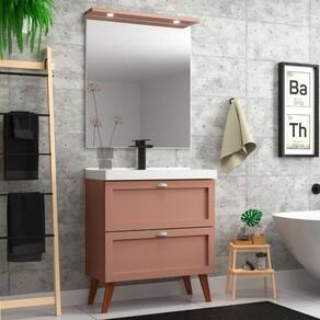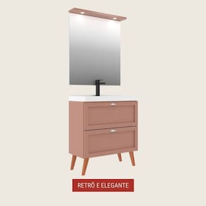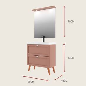 Gabinete para Banheiro com Cuba e Espelheira 80cm Retro Mdf Salmao Milano - On Móveis - Coral