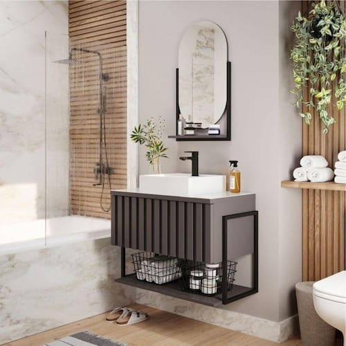 1x Espelho 1 Prateleira Metalon Bogotá Titanium Largura: 44 cm Altura: 78 cm Peso: 8 kg Profundidade: 12 cm Necessita Montagem: Não