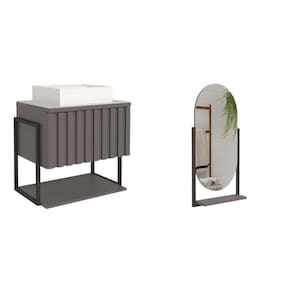 Conjunto para Banheiro com Gabinete Helsing e Espelheira Bogotá Espresso Móveis é formado por Gabinete para Banheiro 100% MDF e Metalon e Cuba em Mármore Sintético, Espelheira com Prateleira em MDF, acabamento em pintura BP. Com amplo espaço interno, ele conta com porta basculante com pistão à gás, além de puxadores de alumínio. Características que garantem melhor mais durabilidade e resistência ao produto. Aproveite e adquira já o seu gabinete de banheiro para deixar o seu ambiente ainda mais charmoso, sofisticado e elegante. Acabamento da Porta: BP Acabamento da Prateleira: BP Altura do Conjunto: 148 cm Ambiente: Banheiro Ambiente Principal: Banheiro codigo_ean: 7909903041321 Complexidade da Montagem: Média: pode ser montado por mais de uma pessoa e/ou necessite de maior conhecimento para montagem Cor: Titanium Cor do Produto: Titanium Cor Flex: NÃO Cor Interna: Titanium Escala de Brilho: Fosco Escala de Brilho da Porta: Fosco Escala de Brilho da Prateleira: Fosco Informação Complementar: 1x Gabinete para Banheiro 1 Porta 1 Prateleira Helsing Titanium Largura: 85 cm Altura: 70 cm Peso: 31,4 Profundidade: 45 Necessita Montagem: Sim