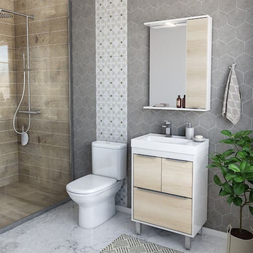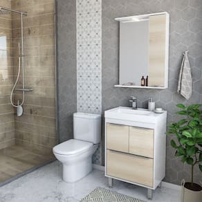 Conjunto de Banheiro 60 cm. Balcão com 1 gaveteiro na parte inferior e duas portas na superior. Espelheira com uma porta, suporte da escova e luminária de led. O tampo branco, com maior profundidade na cuba para maior conforto. Os pés possuem sapata com regulagem de altura para nivelamento. Acabamento da Cuba: Alto Brilho Acabamento da Gaveta: Melamínico Acabamento da Porta: Melamínico Acabamento da Prateleira: Melamínico Acabamento dos Pés: ABS Acompanha Cuba: Sim Acompanha Lâmpada: 01 Acompanha Tampo: Sim Acompanha Válvula: Não Altura do Espelho: 75 cm Altura dos Pés: 17 cm Altura Máxima dos Pés: 17.0000 Ambiente Principal: Banheiro codigo_ean: 7900288020253 Complexidade da Montagem: Baixa: pode ser montado por uma pessoa sozinha Cor: Branco / Legno Crema Cor da Cuba: Branco Cor do Produto: Branco / Legno Crema Cor Interna: Branco Escala de Brilho: Semi-Brilho Escala de Brilho da Gaveta: Semi-Brilho Escala de Brilho da Porta: Semi-Brilho Escala de Brilho da Prateleira: Semi-Brilho Espessura do Espelho: 3 mm Formato da Cuba: Retangular Formato do Espelho: Retangular Formato Espelheira: Retangular Furação para Cuba e Torneira: Sim Gaveta com Chave: Não Itens Inclusos: 1 Gabinete, 1 Espelheira, 1 Cuba, 1 Manual de Montagem e 1 Kit Ferragens Largura do Espelho: 39,5 cm Linha ou Coleção: Eleganza Manual de Montagem e Instalação: https://product-hub-prd.madeiramadeira.com.br/969665/documents/1656d7b1-1491-41bd-93a1-8b02399d9f4d2545271336517310648806144.pdf Marca: Ozini Material da Cuba: Mármore Sintético Material da Gaveta: MDP Material da Porta: MDP Material da Prateleira: MDP Material do Tampo: Mármore Sintético Material dos Pés: Plástico Material Principal: MDP Medida da Cuba (C x L x P): 59cm X 7,5cm X 39cm Medida da Espelheira (A x L x P): 78,1cm X 58,5cm X 13cm Medida do Gabinete (A x L x P): 87cm X 59cm X 40cm Necessita Montagem: Sim Origem do Produto: Nacional Pés Reguláveis: Sim Peso: 34,9 kg Peso Máximo por Gaveta: 5 kg Peso Máximo por Prateleira: 5 kg Possui Espelheira: Sim Possui Gabinete: Sim Possui Gavetas: Sim Possui iluminação: Sim Possui Pés: 04 Possui Porta de Vidro: Não Possui Portas: Sim Possui Recorte No Tampo Para Misturador: Não Possui Rodízio: Não Possui Sifão: Não Possui Tampo: Sim Possui Tampo de Vidro: Não Produto Montado: Sim Quantidade de Espelhos: 01 Quantidade de Gavetas: 01 Quantidade de Prateleiras: 01 Recomendações de Uso, Manutenção e Limpeza: Limpeza deve se feita com pano úmido. Não utilizar nada abrasivo.ivolimpeza com pano úmido Sapatas Niveladoras: Sim Sistema de Montagem: Parafusos, cavilhas Suporta Até (kg): 15 kg Tamanho do Espelho (A x L): 75cm x 39,5cm Tamanho do Gabinete: Pequeno: Abaixo de 60cm de largura Tipo de Corrediça da Gaveta: Metálica Telescópica Tipo de Cuba: Sobrepor Tipo de Dobradiça/Corrediça da Porta: 35 mm Tipo de Fixação do Espelho: Silicone Tipo de Porta: Bater Tipo de Puxador da Gaveta: Embutido Tipo de Puxador da Porta: Externo Marca: Ozini