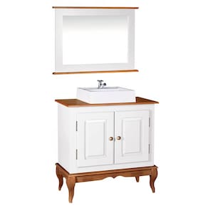 Gabinete para Banheiro com Cuba e Espelheira Dália 3050 - Branco/Imbuia Glazer