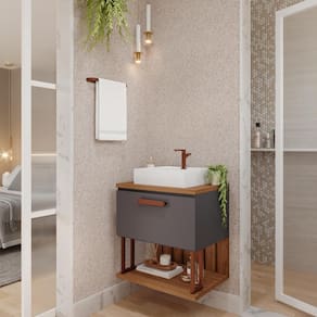 - Acabamento Titanium/Freijó: Design sofisticado e moderno que complementa diversos estilos de banheiro.