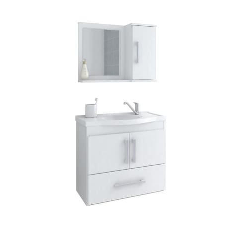 O Gabinete Para Banheiro Com Lavatório E Espelho Atenas Branco MGM Móveis 65cm, combina estilo e funcionalidade para o seu banheiro. Suspenso, possui duas portas, uma gaveta com corrediça telescópica e puxadores em ABS. A espelheira tem uma porta e duas prateleiras, enquanto a estrutura 100% MDF oferece resistência, complementada pelo lavatório de mármore sintético. Aproveite essa solução prática e durável para organizar seu ambiente. Confira na ABC da Construção e conheça o Gabinete Para Banheiro Com Lavatório E Espelho Atenas Branco MGM Móveis 65cm, o armário/gabinete para banheiro ideal para sua casa!