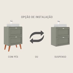 - 01 Gabinete para banheiro com tampo; - 01 kit de pés; - 01 Cuba; - 01 Kit ferragens para montagem; - 01 Manual de montagem.