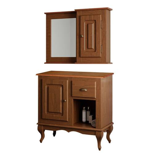 O Gabinete de Banheiro 80cm é a solução completa para seus desafios de armazenamento. Com uma portas, prateleira e nicho, ele oferece espaço amplo para guardar seus itens essenciais, mantendo tudo no lugar certo. Com o aéreo com espelho sua imagem é refletida com clareza, enquanto a sua porta garante um espaço especialmente para organizar seus itens pessoais. Produzidos em Madeira Maciça para tons amadeirado em verniz e MDF nos tons coloridos com acabamento laca, esse gabinete é sinônimo de qualidade e durabilidade. Além disso, possuí pés no estilo Luis XV, dando um toque clássico ao móvel.