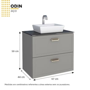 O toucador em aço para banheiro Odin da Cozimax é a melhor opção para quem busca um produto com estilo e qualidade. Fabricado em aço eletrogalvanizado com garantia de 5 anos, é protegido por pintura em pó eletrostática, possui tampo em vidro temperado, espaço interno para guardar os produtos de higiene, porta basculante com pistão a gás que abre para baixo, gaveta em aço com corrediças telescópicas, puxadores em ABS. Dimensões do toucador: - Largura: 67 cm - Altura: 59 cm - Profundidade: 44 cm Características Técnicas: - Produto: Toucador (MONTADO) - Modelo: Odin com tampo - Marca: Cozimax - Tampo: Vidro temperado - Cuba: Vendida separadamente - Quantidade de portas: 1 - Quantidade de gavetas: 1 - Pintura: Pó eletrostática - Estrutura: Aço eletrogalvanizado Acabamento da Gaveta: Pintura Acabamento da Porta: Pintura Acompanha Cuba: Não Acompanha Parafusos Para Fixação Na Parede: Sim Ambiente Principal: Banheiro Complexidade da Montagem: Média: pode ser montado por mais de uma pessoa e/ou necessite de maior conhecimento para montagem Cor: Cinza Cor do Produto: Cinza Escala de Brilho: Semi-Brilho Escala de Brilho da Porta: Semi-Brilho Gaveta com Chave: Não Itens Inclusos: 1 Gabinete, Manual de Montagem e Kit Ferragens Linha ou Coleção: Odin Manual de Montagem e Instalação: https://product-hub-prd.madeiramadeira.com.br/862022/documents/a69eb21d-1b21-486d-95b8-b699337a4ff514380351267toucodinbranco.pdf Material da Gaveta: Aço Material da Porta: Aço Material do Puxador da Gaveta: ABS Material do Puxador da Porta: ABS Material do Tampo: Vidro Material Principal: Aço Medida do Recorte Para Misturador: 2,8cm Necessita Montagem: Sim Origem do Produto: Nacional Peso: 19 Peso Máximo por Gaveta: 5 Possui Nichos: Não Possui Pés: Suspenso Possui Portas: 01 Possui Prateleiras: Não Possui Recorte No Tampo Para Cuba: Não Possui Recorte No Tampo Para Misturador: Sim Possui Sifão: Não Possui Tampo: Sim Recomendações de Uso, Manutenção e Limpeza: Pano umedecido. Sapatas Niveladoras: Não Sistema de Montagem: Parafusos Suporta Até (kg): 20 Suporte para Toalheiro: Não Tamanho Indicado Para Cuba: 35cmx35cm Tipo de Corrediça da Gaveta: Metálica Telescópica Tipo de Dobradiça/Corrediça da Porta: Metálica Tipo de Gabinete: Gabinete Suspenso Tipo de Móvel para o Banheiro: Gabinete de Banheiro Tipo de Porta: Basculante Tipo de Puxador da Gaveta: Externo Tipo de Puxador da Porta: Externo