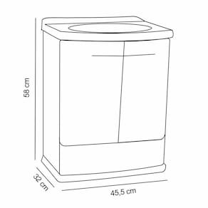 - Gabinete de Plástico fácil de montar e não exige mão de obra especializada. - Acompanha sifão, válvula e engate flexível. Acompanha Manual de Instalação: Sim Ambiente: Banheiro Complexidade da Montagem: Baixa Cor: Branco Cor: Branco Escala de Brilho: Brilhante Escala de Brilho da Gaveta: Brilhante Escala de Brilho da Porta: Brilhante Material da Porta: Polipropileno Material do Puxador da Porta: Alumínio Material Principal: Polipropileno Necessita Montagem: Sim Possui Portas: 02 Possui Prateleiras: 01 Sistema de Montagem: Parafusos, encaixes. Tipo de Dobradiça: Plástica