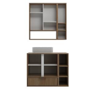 MDF BP com espessura de 1,5cm, Mármore Sintético (Cuba e Tampo), PVC (bordas), Metal (puxadores)Vendido e entregue por MadeiraMadeira