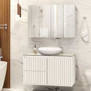 Design, Sofisticação, Qualidade e Beleza. Tudo em um só produto!O Gabinete Ripado 80 da ASTRAL DESIGN é a melhor opção para isso. É um produto com design moderno e inovador com excelentes detalhes e benefícios.O Gabinete possui tampo de vidro de 8mm de espessura, que da beleza e maior resistência ao seu produto, puxadores em cava 45º, dando estilo e leveza ao ambiente, gavetas com corrediças telescópicas e sistema SLOW de fechamento suave, também possui divisórias internas que facilitam a organização de seu banheiro, conta com uma Cuba de Louça que dá maior sofisticação.Gabinete 100% MDF, Corpo 15mm e tampo de vidro de 8mm EspessuraGavetas com corrediças telescópicas, que proporcionam a extração total das gavetasPuxadores em cava 45°Dobradiças reforçadas com sistema SLOW, garantindo maior estabilidade e amortecimento ao fechamento das portasCuba em Louça OvalPADRÕES DE CORES DISPONÍVEIS- Branco OrvalhoDIMENSÕES:GABINETE: Largura: 80cm / Profundidade: 40cm / Altura: 47cmTAMPO DE VIDRO: 8mmCUBA DE LOUÇA OVAL: Largura: 40cm / Profundidade: 34cm / Altura: 12cmMONTAGEM:Nossos produtos são montados para facilitar a instalação em sua residência, ficando a cargo do cliente apenas a instalação.Manual e ferragens para fixação acompanham o produto.*Todos os produtos da marca Astral Design oferecem 2 anos de garantia.***ESPELHEIRA, OBJETOS DECORATIVOS, TORNEIRA, VÁLVULAS E PEÇAS HIDRAULICAS NÃO INCLUSAS. IMAGENS MERAMENTE ILUSTRATIVAS***