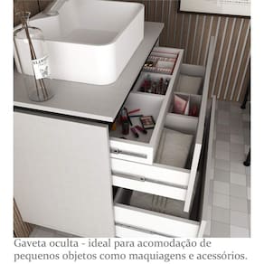 Gabinete para banheiro sem cuba em MDF 15mm. Balcão de 80cm com 02 gavetas externas e 01 gaveta oculta com divisórias (ideal para acomodação de pequenos objetos como maquiagem). Corrediças telescópicas (permitem a extração total da gaveta). Instalação aérea. Não acompanha pés e puxadores. Tampo do balcão enviado sem furações para torneira e cuba. Produto já enviado montado com acessórios para instalações. "Objetos e acessórios decorativos não acompanham produto. Acabamento da Cuba: Acabamento da Gaveta: BP Acabamento da Porta: Acabamento da Prateleira: Acabamento dos Pés: Acompanha Cuba: Não Acompanha Parafusos Para Fixação Na Parede: Sim Altura dos Pés: Ambiente Principal: Banheiro Complexidade da Montagem: Média: pode ser montado por mais de uma pessoa e/ou necessite de maior conhecimento para montagem Comprimento da Prateleira: Cor: Argento/Preto Cor da Cuba: Cor do Produto: Argento/Preto Cor Flex: Cor Interna: Escala de Brilho: Fosco Escala de Brilho da Gaveta: Fosco Escala de Brilho da Porta: Escala de Brilho da Prateleira: Espessura da Bancada: Espessura da Prateleira: Gaveta com Chave: Não Informações Complementares: Itens Inclusos: 1 Gabinete para banheiro e manual de montagem Linha ou Coleção: Urban Manual de Especificação Técnica: Manual de Montagem e Instalação: https://cdn2.madeiramadeira.com.br/atributo/m-veis-bosi/556799-urban-balc-o.pdf Material da Cuba: Material da Gaveta: MDF Material da Porta: Material da Prateleira: Material do Puxador da Gaveta: Material do Puxador da Porta: Material do Tampo: MDF Material do Toalheiro: Material dos Pés: Material Principal: MDF Medida da Cuba (C x L x P): Medida do Recorte Para Cuba: Medida do Recorte Para Misturador: Montagem Flex: Necessita Montagem: Não Origem do Produto: Nacional Pés Reguláveis: Peso: 32,3 Peso Máximo por Gaveta: 5 Peso Máximo por Prateleira: Possui Nichos: Não Possui Pés: Não Possui Portas: Não Possui Prateleiras: Não Possui Recorte No Tampo Para Cuba: Não Possui Recorte No Tampo Para Misturador: Não Possui Rodízio: Possui Sifão: Não Possui Tampo: Sim Recomendações de Uso, Manutenção e Limpeza: Limpar com flanela ou pano macio seco, não utilizar produtos abrasivos, desengordurantes, álcool ou solvente. Não expor o produto diretamente à luz solar e à umidade. Rodízio com Trava: Sapatas Niveladoras: Sistema de Montagem: Buchas e parafusos Suporta Até (kg): 15 Suporte para Toalheiro: Não Tamanho Indicado Para Cuba: 46,5x37 Tipo de Corrediça da Gaveta: Metálica Telescópica Tipo de Dobradiça/Corrediça da Porta: Tipo de Gabinete: Gabinete Suspenso Tipo de Madeira Maciça: Pinus Tipo de Madeira Maciça da Gaveta: Pinus Tipo de Madeira Maciça da Porta: Tipo de Madeira Maciça da Prateleira: Tipo de Madeira Maciça do Puxador da Gaveta: Tipo de Madeira Maciça do Puxador da Porta: Tipo de Madeira Maciça dos Pés: Tipo de Móvel para o Banheiro: Gabinete de Banheiro Tipo de Porta: Tipo de Puxador da Gaveta: Não Possui - Abertura por Fecho Toque Tipo de Puxador da Porta: Válvula indicada: