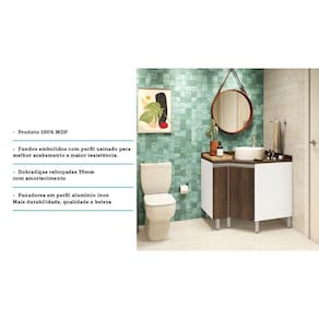 Gabinete Para Banheiro Sem Furação Suprema Branco Com Nogueira Dourado Luciane Móveis Branco Polar Com Nogueira Dourado Gabinete para Banheiro sem Furação Suprema Branco com Nogueira Dourado Luciane Móveis Organize seu Banheiro com muita facilidade e praticidade.