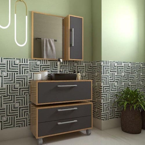 1x Gabinete Suspenso para Banheiro Com Cuba Preta 80cm 1 Porta Basculante Alice Mel/Grafite Largura: 80 Altura: 30 Peso: 113 Profundidade: 40 Necessita Montagem: Sim