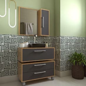 1x Armário Balcão de Banheiro com Rodizio e 2 Gavetas Alice Mel/Grafite Largura: 80 Altura: 48 Peso: 17.28 Profundidade: 40 Necessita Montagem: Sim