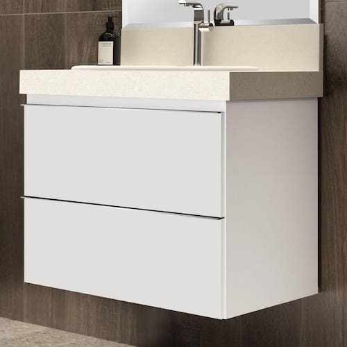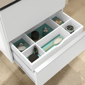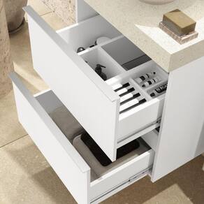 Produto fabricado em MDF e MDP BP (15mm), puxadores em alumínio anodizado, caixaria estruturada com cantoneiras metálicas, possui gavetas com corrediças telescópicas proporcionando abertura total das mesmas e gavetas com divisores e higiênico organizador dental (removível e lavável). Possui gaveta Interna com manta anti-derrapante protegendo o fundo da mesma. Acompanha parafusos e buchas de nylon para fixação na parede. Armário pronto para receber lavatório de granito ou porcelanato, seja com cuba de apoio ou embutir. Produto sai montado de fábrica, devidamente regulado, bastando apenas fixá-lo na parede. Garantia de 12 meses para defeitos de fabricação. Possui manual de instalação. Acabamento da Gaveta: BP Acompanha Cuba: Não Acompanha Parafusos Para Fixação Na Parede: Sim Ambiente Principal: Banheiro codigo_ean: 7908439683784 Cor: Branco/Branco Cor do Produto: Branco/Branco Cor Interna: Branco Escala de Brilho: Fosco Escala de Brilho da Gaveta: Fosco Gaveta com Chave: Não Informações Complementares: Parafusos, Buchas De Nylon Para Fixação Na Parede Itens Inclusos: 1 Gabinete, Manual de instalação E Kit Ferragem. Linha ou Coleção: Blu Manual de Montagem e Instalação: https://product-hub-prd.madeiramadeira.com.br/661453/documents/2d8036a2-fbef-4022-9d41-06f43bf607a9021e733505ilovepdfmerged14.pdf Material da Gaveta: MDP Material do Puxador da Gaveta: Alumínio Material Principal: MDP Necessita Montagem: Não Origem do Produto: Nacional Peso: 28,6 kg Peso Máximo por Gaveta: 2 kg Possui Espelho: Não Possui Nichos: Não Possui Pés: Suspenso Possui Portas: Não Possui Prateleiras: Não Produto Montado: Não Recomendações de Uso, Manutenção e Limpeza: Nunca Utilizar Produtos Químicos, Use Somente Flanela Levemente Umedecida Em Água E Em Seguida Uma Outra Seca E Macia, Caso Ocorra Vazamento Ou Acúmulo De Água No Produto, Enxugar Imediatamente. Sapatas Niveladoras: Não Suporta Até (kg): 5 kg Tipo de Corrediça da Gaveta: Metálica Telescópica Tipo de Móvel para o Banheiro: Gabinete de Banheiro Tipo de Puxador da Gaveta: Externo Ean: 7908439683784