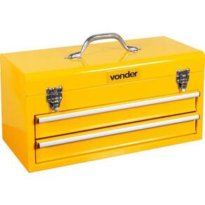 Possui alça metálica, corrediças telescópicas e fecho duplo.