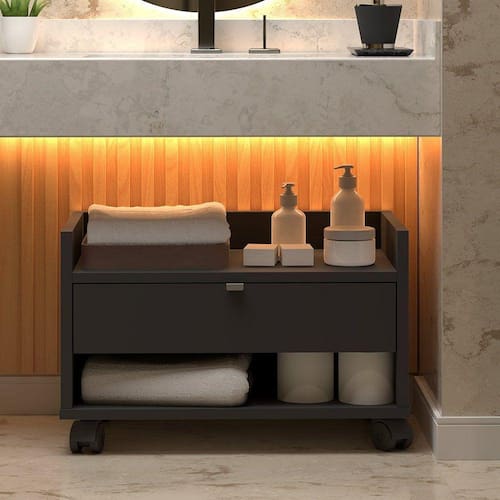 Dimensões do Produto Montado: Altura: 42 cm Largura: 60 cm Profundidade: 37 cm Observações: - Possui rodízios - Contém uma gaveta - Produto em MDP Informações adicionais: - Verifique o tamanho e os detalhes do produto antes de realizar a compra. - As fotos são meramente ilustrativas. Objetos decorativos que aparecem nas imagens não acompanham o produto. - A transportadora entregará o produto no portão e/ou portaria da residência, ou ainda, somente no andar térreo, em caso de prédios, do endereço de entrega. - Avaliar a mercadoria no ato do recebimento e recusar em caso de divergência ou danos. Marca: Jm3