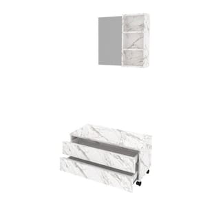 Quando falamos de banheiro pensamos em bem-estar. Pois o banheiro é onde a gente recarrega nossa energia vital, idealiza sonhos, e realiza toda a manutenção necessária para uma saúde física e mental. Com design prático, o móvel entrega ao ambiente toques de modernidade e elegância. Funcional, acondiciona produtos de higiene e beleza, porta escova, papel higiênico, toalhas, artigos de limpeza, entre tantos outros objetos pessoais. Balcão Gabinete com rodízio para Banheiro BN3603. Possui duas gavetas com amplo espaço. Estrutura em MDP e acabamento em pintura UV. Não acompanha cuba. Imagem meramente ilustrativa. A decoração do ambiente não acompanha o produto. Produto, acompanha nota. O produto será entregue desmontado. Altura do Conjunto: 54 cm Ambiente: null Ambiente Principal: Banheiro Cor: Branco Informação Complementar: 1x Gabinete para Banheiro com Rodizios 80cm 2 Gavetas BN3603 Mármore BrancoLargura: 80Altura: 38Peso: 14.75Profundidade: 38.7Necessita Montagem: Sim1x Espelheira para Banheiro 3 Nichos BN3609 Mármore BrancoLargura: 60Altura: 54Peso: 7.65Profundidade: 15.6Necessita Montagem: Sim Material Principal: MDP Possui Portas: Não