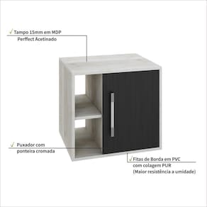 Gabinete Soft 500 Perffect Acetinado Snow C/preto ônix Sobre o ProdutoGabinete Soft 500 Perffect AcetinadoDescrição do Produto:O Gabinete Soft 500 GTSF500 possui 01 porta e prateleira lateral, tem design compacto, perfeito para pequenos espaç linha Basic traz móveis funcionais e de design tradicional, aliando simplicidade e estilo para seu ambiente de banheiro!Itens Inclusos:1 GabineteDimensões dos Produtos:Gabinete Soft 500 Perffect Acetinado: 50 x 40 x 45 cmInformações Logísticas (Comp. X Prof. X Alt.) 54 x 42 x 28 cm - Peso: 12,125 KgPeso Total: 12,125 KgObservações:Não acompanha acessórios decorativos. Imagens meramente ilustrativas.Informações Técnicas / Características:- Cor do Produto: Perffect Acetinado - Marca: Compace- Modelo: GTSF500- Linha: Basic- Material: Mdp - Acabamento: Perffect Acetinado- Escala de Brilho: Fosco- Fita de Borda: Pvc c/colagem PUR- Possui Portas: 1- Tipo de Porta: Bater - Material do Puxador: Abs- Possui Prateleiras: 1- Peso Máximo por Prateleira: 3 kg- Possui Pés: Não, suspenso - Furação para Cuba / Lavatório: Não - Suporta Até (kg): 15 kg- Comprimento: 50cm- Profundidade: 40cm- Altura: 45cm - Peso Lí.: 10,98Kg- Recomendações de Uso, Manutenção e Limpeza: Para a limpeza, utilize flanela seca ou pano macio levemente umedecido em água. Utilize um pano seco em seguida. Evite com produtos químicos (solventes, thinner, acetona, etc) e não utilize nenhum tipo de esponja de aço.- Necessita de Montagem: Sim / Acompanha Manual de Montagem- Complexidade da Montagem: Média: pode ser montado por mais de uma pessoa e/ou necessite de maior conhecimento para montagem.- Garantia: 6 meses Material: Mdp | Acabamento: Perffect Acetinado | Escala de Brilho: Fosco | Fita de Borda: Pvc | Possui Portas: 1 | Tipo de Porta: Bater | Tipo da Dobradiça: Metálica | Comprimento: 50 | Limite de unidades por venda: É possível comprar até 1 unidade por venda. | Quantidade máxima de pedido: 1 | Largura: 40 | Altura: 45 | Profundidade: 40 | Preço Tabelado: | Cor: Multicolorido | Certificação de teste externa: Não Aplicável | Baterias são necessárias?: false | Palavras-chave de Pesquisa: Não aplicável | Fonte de energia: Não aplicável | Fabricante: Compace | da peça: | Is Fragile: | Exige montagem: | Peso do item: | Dimensões do item P x L x A: | Principais Características do Produto 0: | Principais Características do Produto 1: | Principais Características do Produto 2: | Componentes incluídos: | de caixas: | Quantidade de itens: | do modelo: Cor: Snow C/Preto Ônix