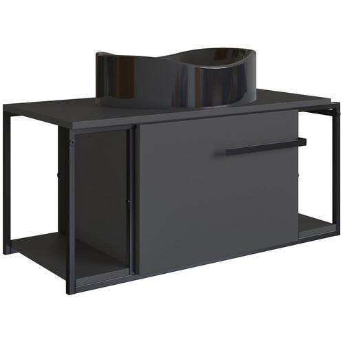 Gabinete Susp E Cuba Marmore Sintetico P1019X941012 Grafite Preto PP